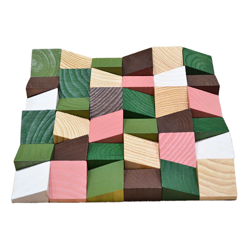 Onze houten mozaïekpanelen zijn verkrijgbaar in diverse afmetingen—van compacte vierkante panelen tot langere rechthoekige modellen. Hierdoor zijn ze eenvoudig te combineren en passen ze in iedere stijl of ruimte.